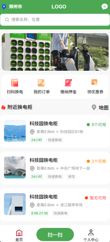 共享换电柜 APP 是为两轮电动车、外卖骑手、同城配送及个人用户打造的智能电池即时更换服务平台。通过 “扫码换电、自动结算、全程监控” 的数字化模式,解决电动车充电慢、续航短、安全隐患大、充电不方便等痛点,实现30 秒快速换电、无限续航、24 小时不间断运营。